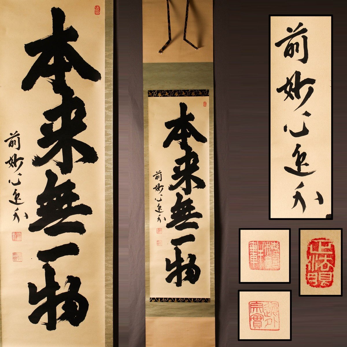 【佳香】妙心寺派管長 梶浦逸外 『本来無一物』肉筆 一行書 紙本 掛軸 仕立箱 本物保証