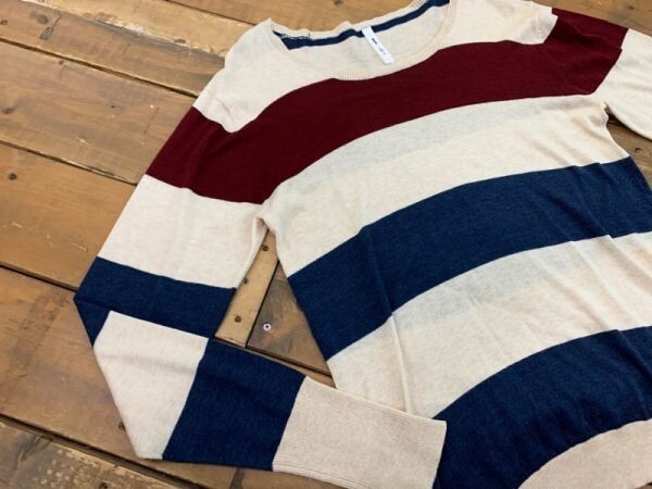 - E32★glamb/グラム クルーネックボーダーニットトップス メンズ 長袖 ニットソー サイズ2 ベージュ×ワイン×ネイビー USED ★