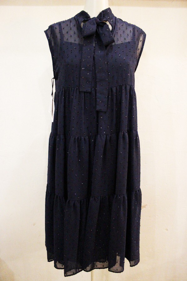- 3619★タグ付き kaene/カエン インナーキャミ付き ドビーシフォンティアードワンピース ノースリーブ ドレス 結婚式 ネイビー 38サイズ★