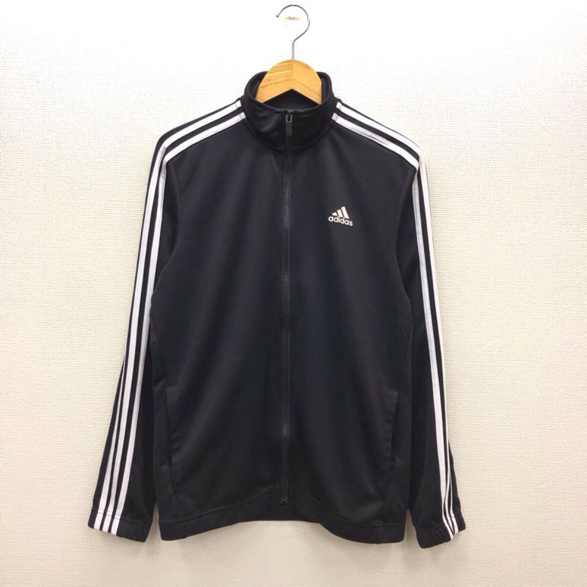> 【GK042】adidas Mサイズ ジャージ ブラック 三本ライン 袖口ゴム ブランド古着 アディダス トラックジャケット スポーツウェア 送料無料
