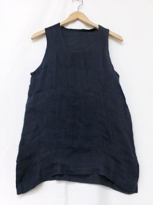 - tricot COMME des GARCONS トリココムデギャルソン リネンノースリーブシャツ TB020140 ネイビー 麻100%