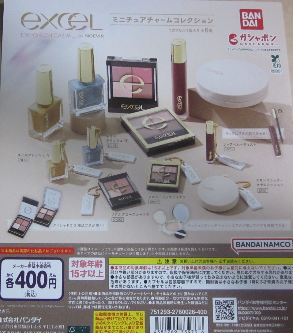- 同梱可・特売品 EXCEL ミニチュアチャームコレクション 全6種セット ガシャポン 台紙付セットあり TOKYO RICH CASUAL by NOEVIR