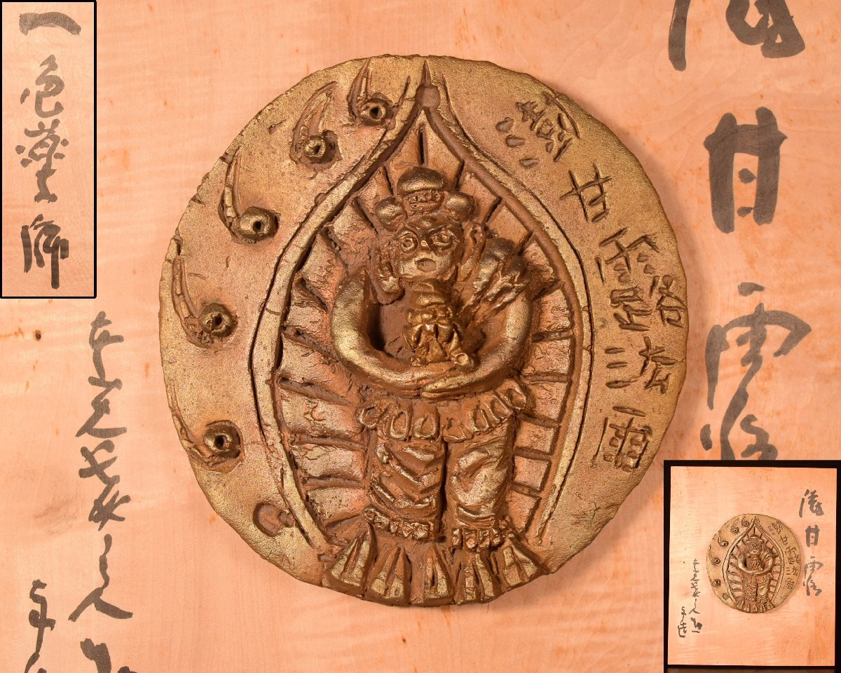 Z450 【泉美】清水公照 一色薬師「樹甘露法雨」ブロンズ掛仏 仏像 置物 オブジェ拍卖