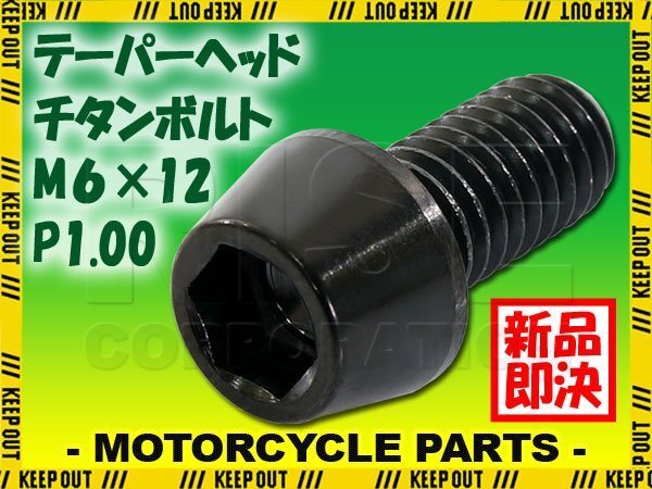 > メール便OK!M6×12 P1.00 チタンボルト 1本 6mm 12mm ピッチ1.00 ブラック テーパーボルト キャップボルト クランクケース バイク