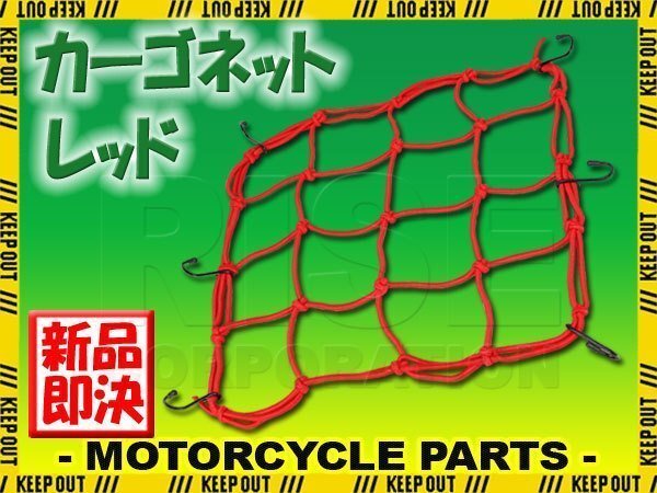 汎用 オートバイ バイク用品 カーゴネット レッド 赤 ツーリングネット 荷物固定 ゴム キャリアネット 6フック 固定紐