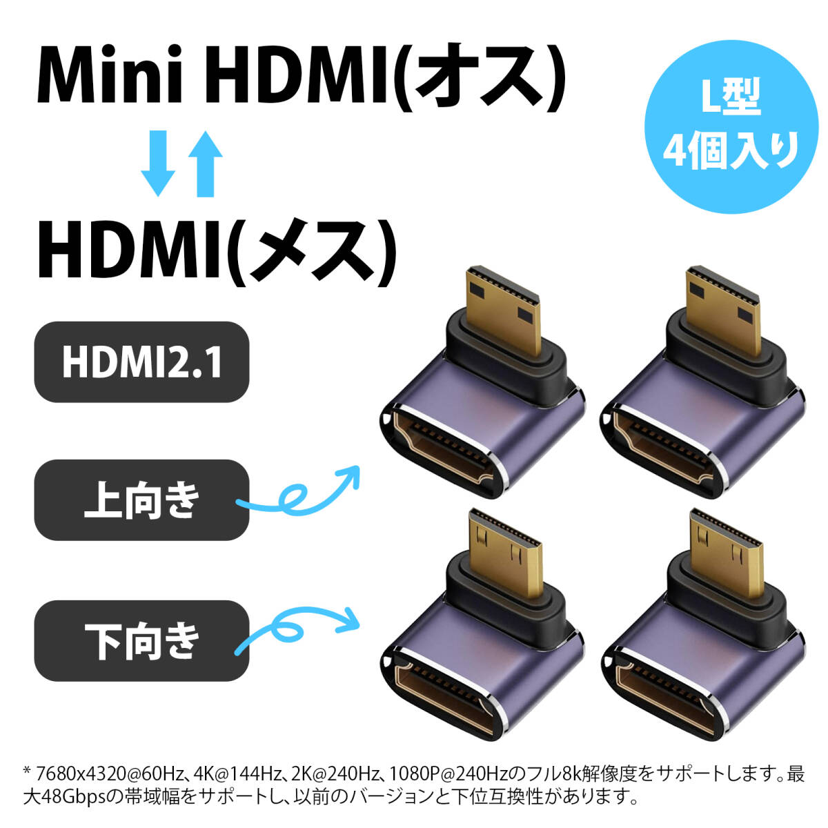 - 【4 個入り】hdmi 変換 hdmi ケーブル l字 hdmi ケーブル 延長 8K対応 Micro HDMI ミニHDTV 変換アダプター ;J7677J7678-2ps;