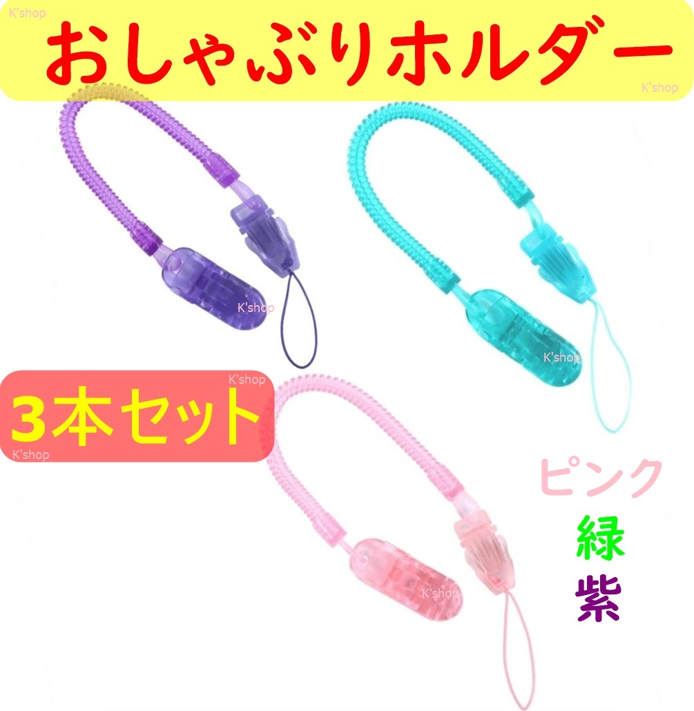 > おしゃぶりホルダー おもちゃ ストラップ ガラガラ 赤ちゃん★3本セット/超軽量 歯固め おしゃぶり カラー ピンク、グリーン、パープル