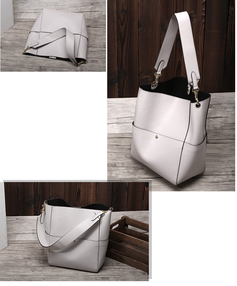 - 高品質 牛皮 ハンドバッグ ショルダーバッグ グレー レディース 女性 【n426】