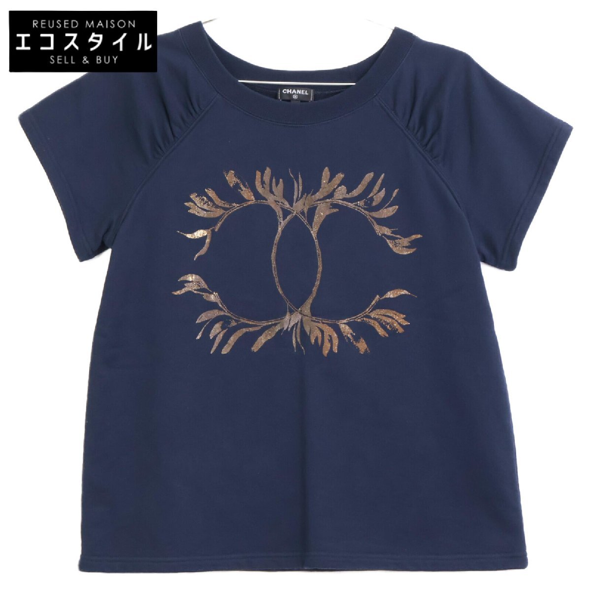 > CHANEL シャネル P57840K07626 ココマークプリント スウェットTシャツ トップス S ネイビー レディース