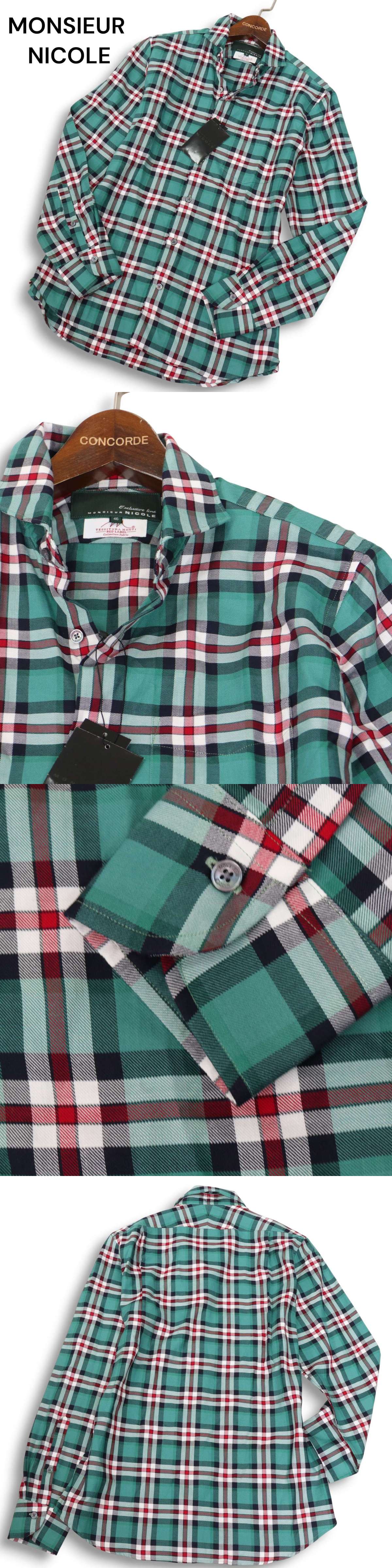 - 【新品 未使用】 MONSIEUR NICOLE ムッシュ ニコル TESSITURA MONTI生地★ 長袖 チェック柄 アラカルト シャツ Sz.46 メンズ