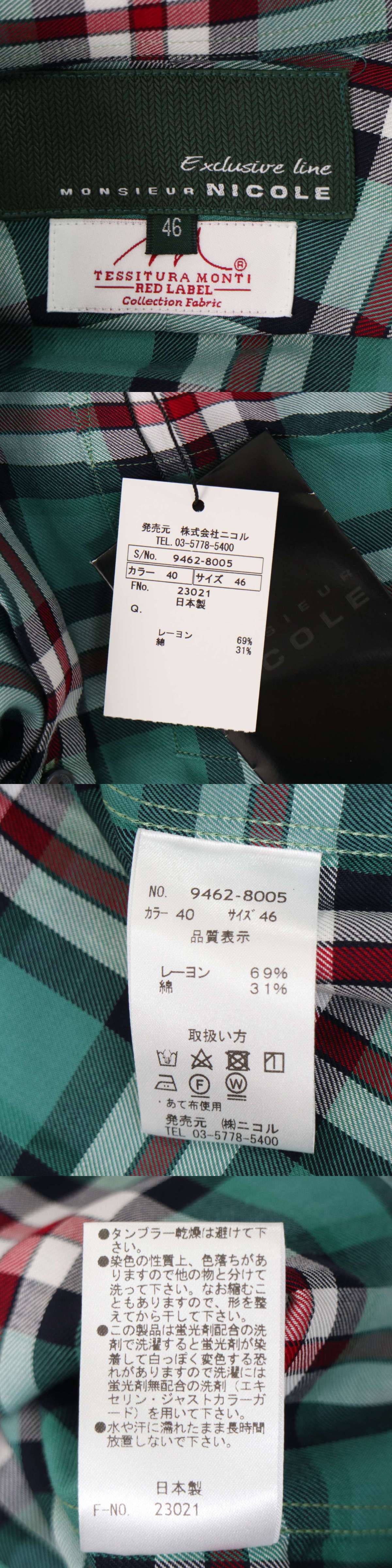 > 【新品 未使用】 MONSIEUR NICOLE ムッシュ ニコル TESSITURA MONTI生地★ 長袖 チェック柄 アラカルト シャツ Sz.46 メンズ