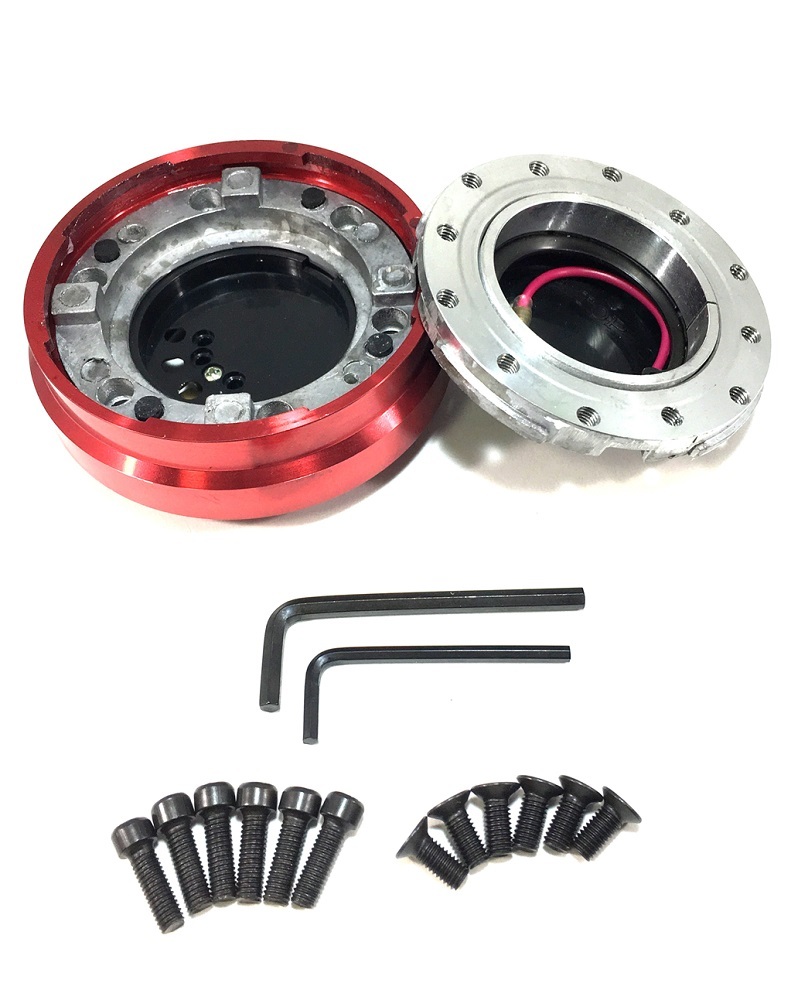 - クイック リリース ステアリング ボス 薄型 レッド 赤 スリムタイプ 25mm 脱着式 ハンドル 盗難 防止 汎用品