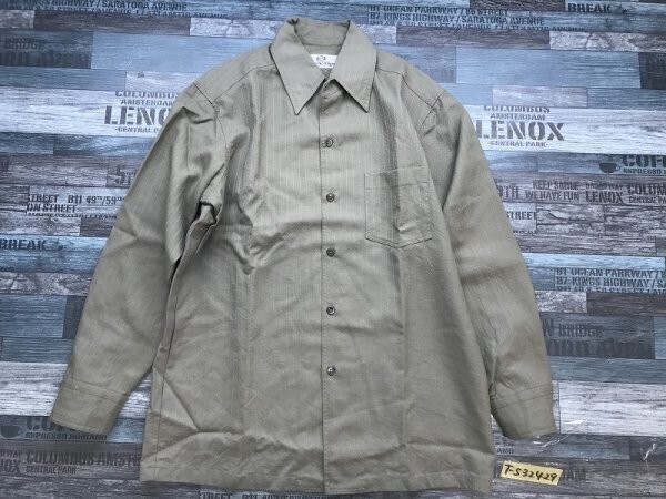- chevalier メンズ ヘリンボーン柄 オープンカラー ウール 長袖シャツ 日本製 L カーキ