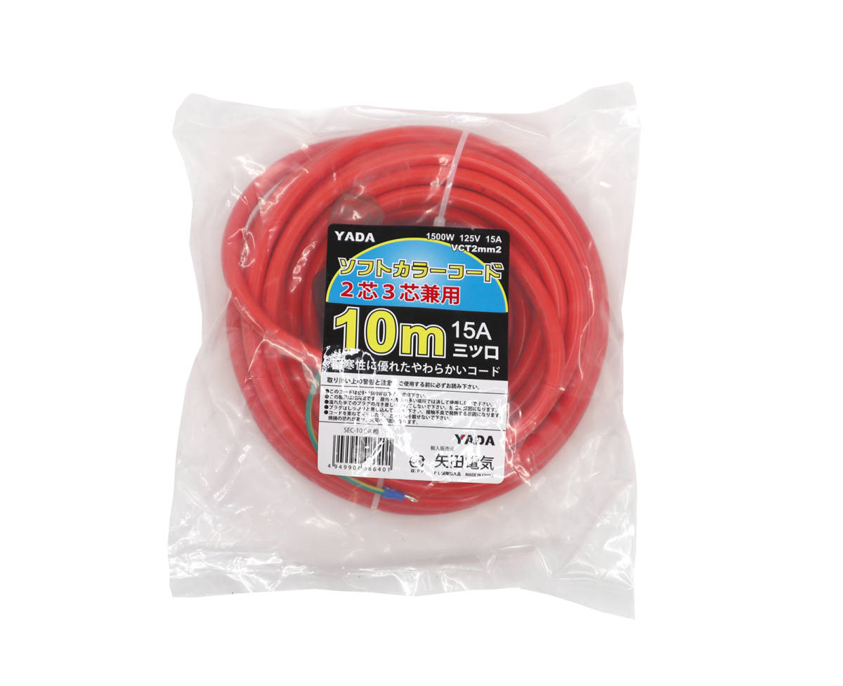- 延長コード オレンジ 2芯3芯兼用 10M ソフト太コード VCT2mm2 アース付き オレピンプラグ ◆本州四国九州送料無料