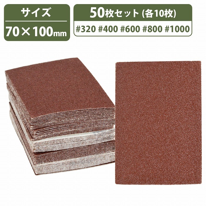 - 70mm×100mm 50枚 5種 各10枚 中目 細目 # 320/400/600/800/1000 オービタルサンダー サンドペーパー マジック式 四角 ヤスリ