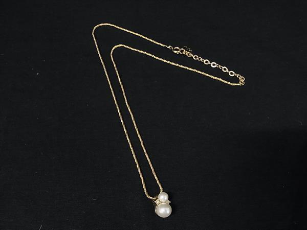 - 1円 ■極美品■ ChristianDior クリスチャンディオール ラインストーン パール ネックレス ペンダント アクセサリー ゴールド系 FS6927