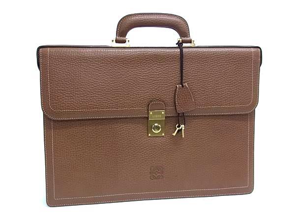 - 1円 LOEWE ロエベ アナグラム レザー カギ付き ビジネスバッグ ブリーフケース 書類かばん 紳士 メンズ ブラウン系 FU4803