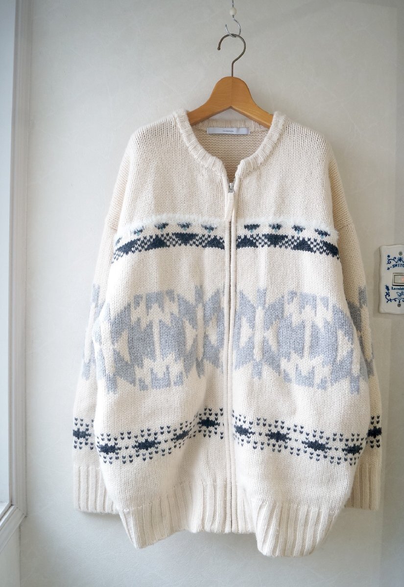 > ★ FRAMeWORK /フレームワーク*秋冬ゆったり ウール ジャガードZIPカーディガン /オフホワイト* 古着のgplus広島 2511t1
