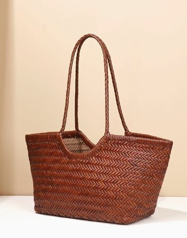 - バッグレトロトートバッグ本革編み野菜バスケットショルダーバッグ