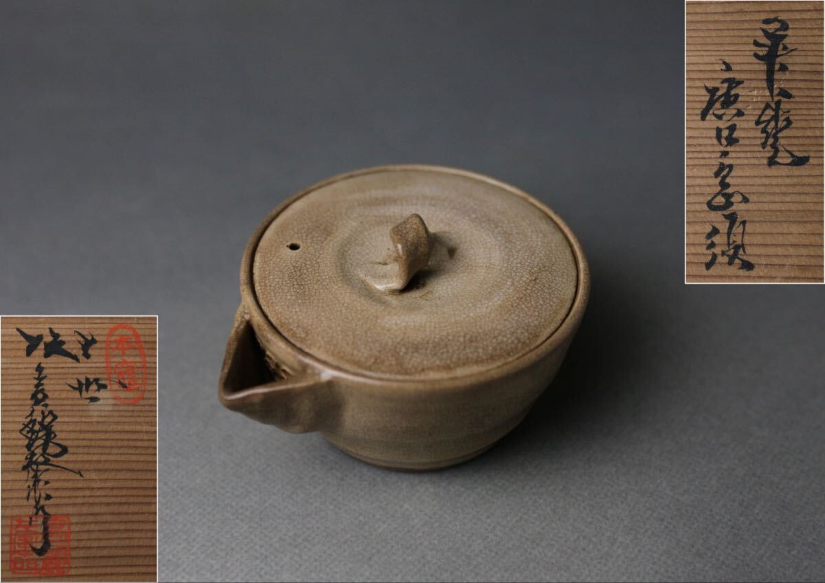 > 時代 萩焼 唐口急須 共箱 急須 煎茶器 急須 煎茶道具 宝瓶 茶器 茶道具 古美術品 骨董品 時代物