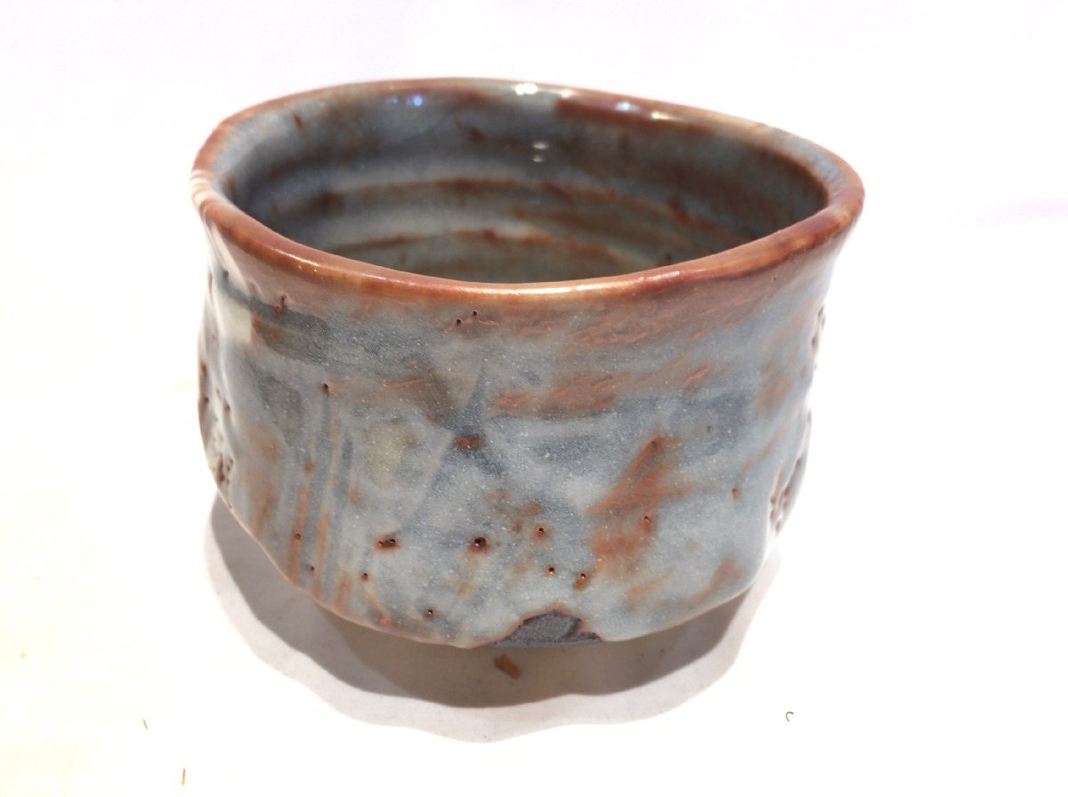 - ■■256■未使用■水野桂 鼠志野「桂」 茶道具 抹茶碗 共箱 黄布 茶 茶器 茶道