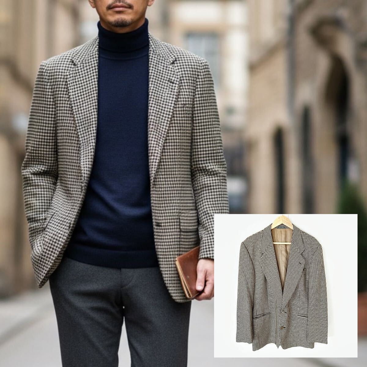 > イタリア製◎上質◎【STUDIO 0001 FERRE】スタジオフェレ カシミヤ テーラードジャケット ブレザー 千鳥格子柄 ベージュ メンズ/Y37590YY