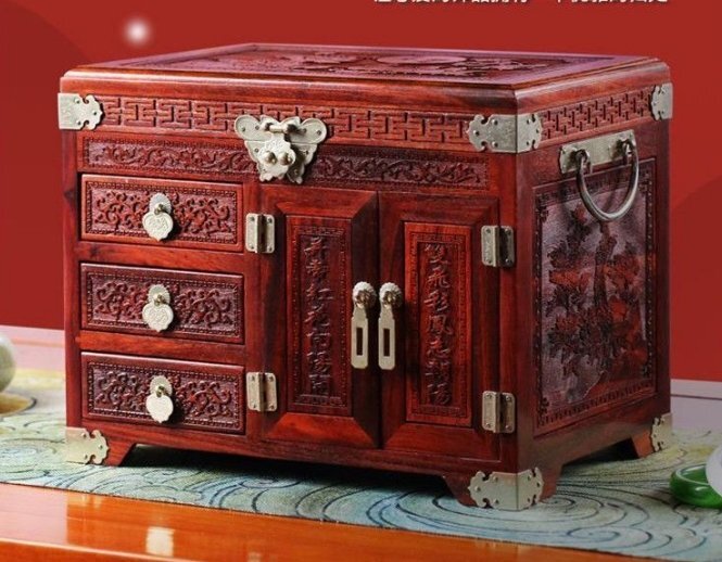 - 赤木アクセサリーボックス精緻な紫檀木製アクセサリーボックスロック付きレトロ収納ボックス
