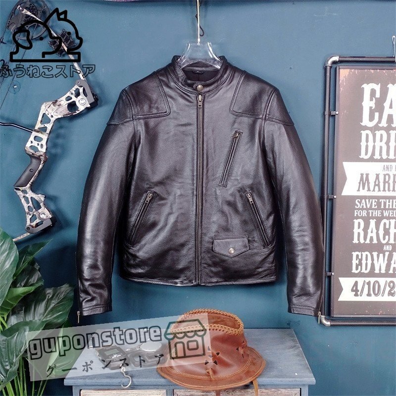 - 特売!レザージャケット 上品 定番 本革 牛革 ライダースジャケット ン バイクジャケット 革ジャン S~4XL 黒