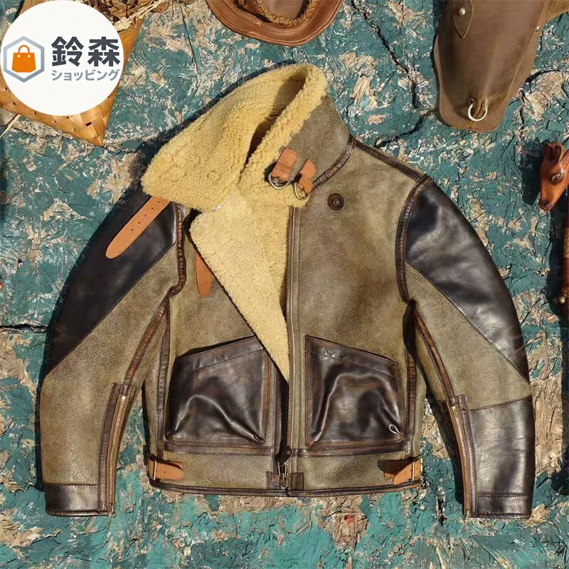 - 輸入された天然羊革の毛皮一体型本革ジャケット、メンズヴィンテージ防寒ジャケット
