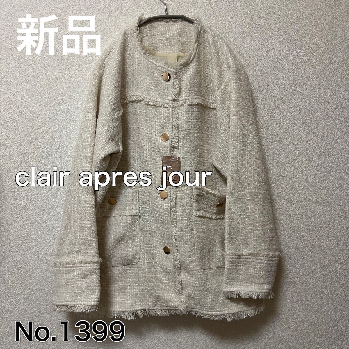 - 送料無料 匿名配送 新品 clair apres jour ノーカラー ツイード ジャケット LL