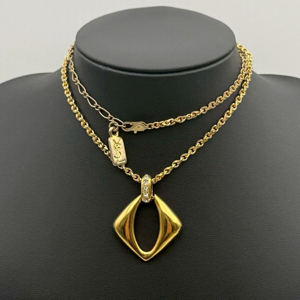 - 【希少・極美品】Yves Saint Laurent イヴサンローラン YSL ネックレス チョーカー ペンダント ゴールド ラインストーン 菱形 スクエア