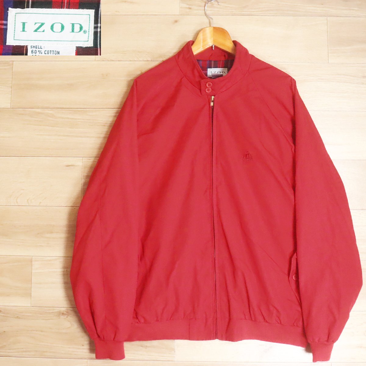 - C6R/R6.16-2 アメリカ古着 IZOD アイゾット スイングトップ ハリントンジャケット 裏チェック ブルゾン XL メンズ レッド