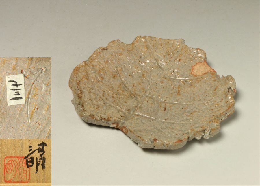 ■三和堂■辻清明 灰釉葉皿 小皿 陶器 信楽 共箱 彫や造形の景色がすばらしい!!