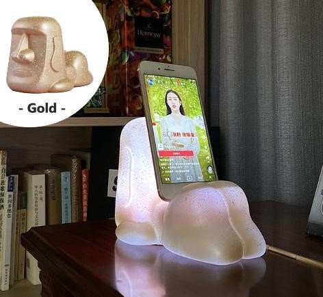 - 照明 スマホスタンド ゴールド おしりがキュートな モアイ 7色に光る モアイ像 オブジェ n927