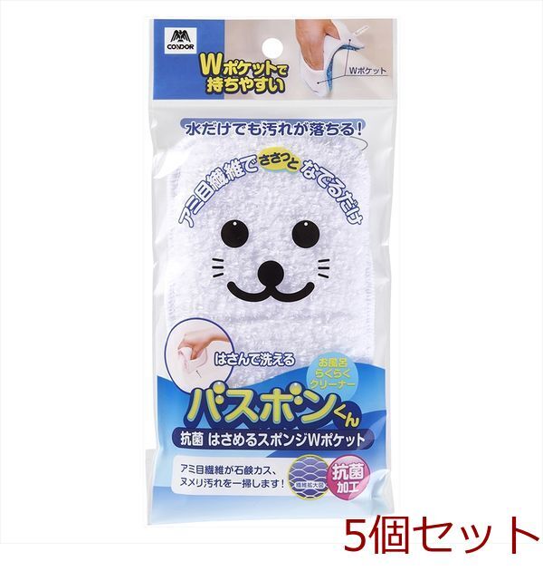- バスボンくん抗菌はさめるスポンジWポケットホワイト 5セット