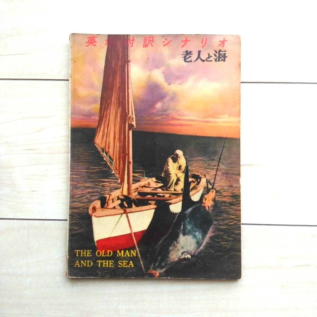 - ■『老人と海(TheOldManandTheSea』英和対訳シナリオ。★E.Hemingwayのノーベル文学賞受賞作の映画化。昭和33年初版。外国映画出版社発行。
