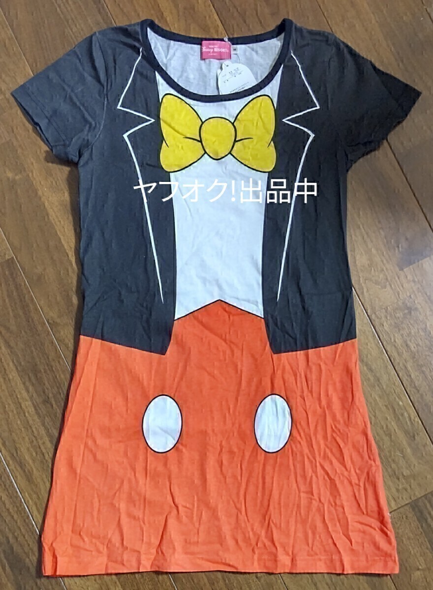 - ミッキー 燕尾服風 Tシャツ ディズニー 半袖Tシャツ 女性Mサイズ ディズニー TDR 着丈約80センチ ロングシャツ