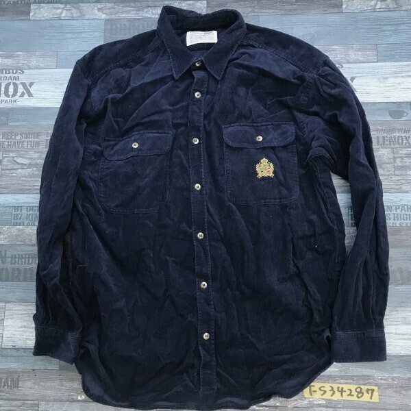 - Hampstead レディース ダブルポケット ロゴ刺繍 コーディロイ 長袖シャツ 紺