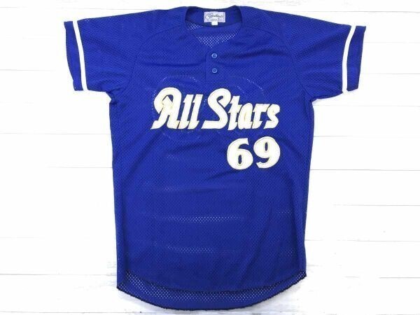 > Yardbirds ジャパーナ レトロ スポーツ 野球 69 H.HAGIWARA ユニフォーム メッシュ ベースボール シャツ メンズ ポリエステル100% L 青