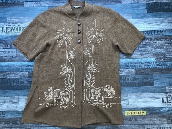 > JOLLY KOAN レディース 刺繍入り リネンライク トリアセテート・ポリエステル 半袖シャツ FREE(9-11) 茶