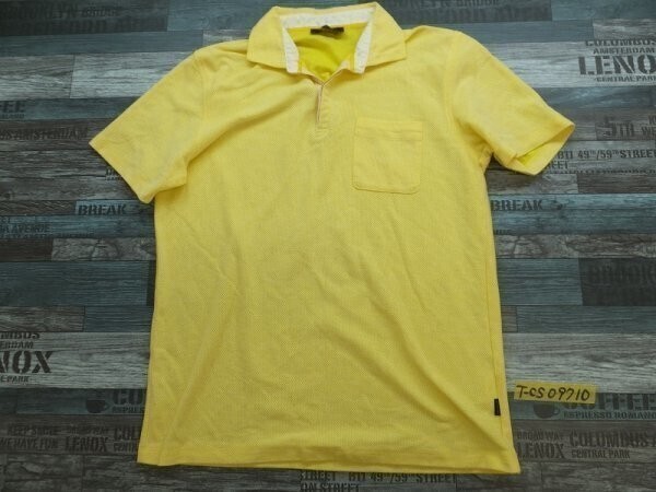 - 五大陸 メンズ オープンカラー 胸ポケット ストライプパイピング付き 長袖ポロシャツ 38 黄色