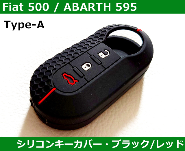 - アバルト / フィアット シリコンキーカバー ブラック/レッド タイプA ABARTH,FIAT