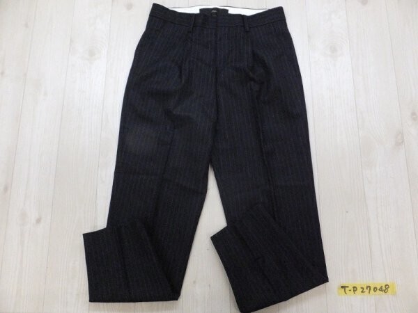 - SHIPS シップス レディース ストライプ ウール タック入り ビジネスパンツ 36 紺