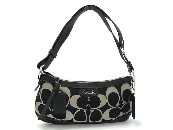 - 1円 ■美品■ COACH コーチ F19742 シグネチャー キャンバス×レザー クロスボディ ショルダーバッグ 肩掛け 斜め掛け ブラック系 FP8014