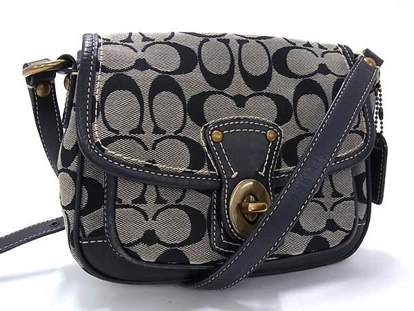 - 1円 COACH コーチ 10566 シグネチャー キャンバス×レザー ターンロック クロスボディ ショルダーバッグ 斜め掛け ブラック系 GB2226