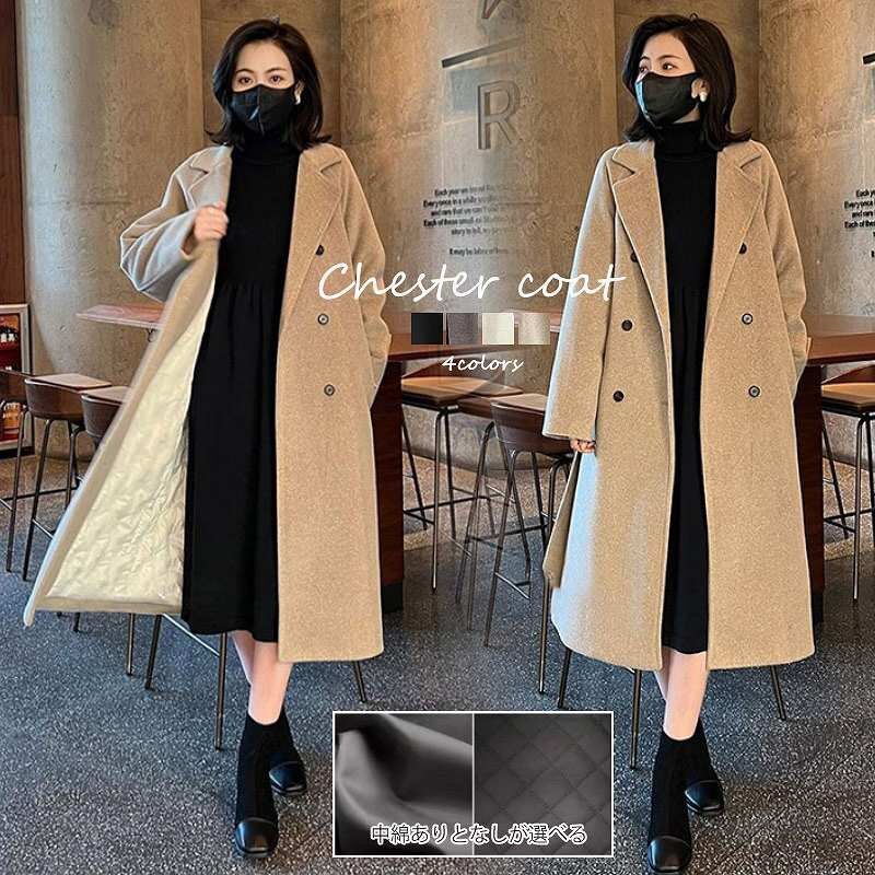 - チェスターコート ロング丈 ロングコート アウター 中綿コート 普通(M)中綿なし オートミール