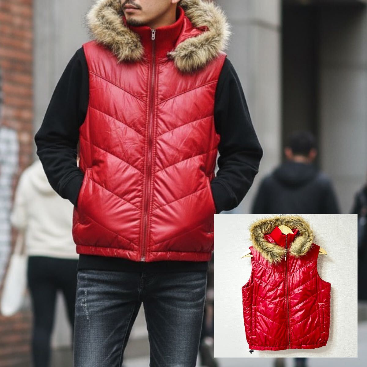 > スタイリングの主役に◎【Place plan】プレイスプラン 中綿ベスト アウター 重ね着 レイヤード ストリート レッド 赤 メンズM/Y37546YY