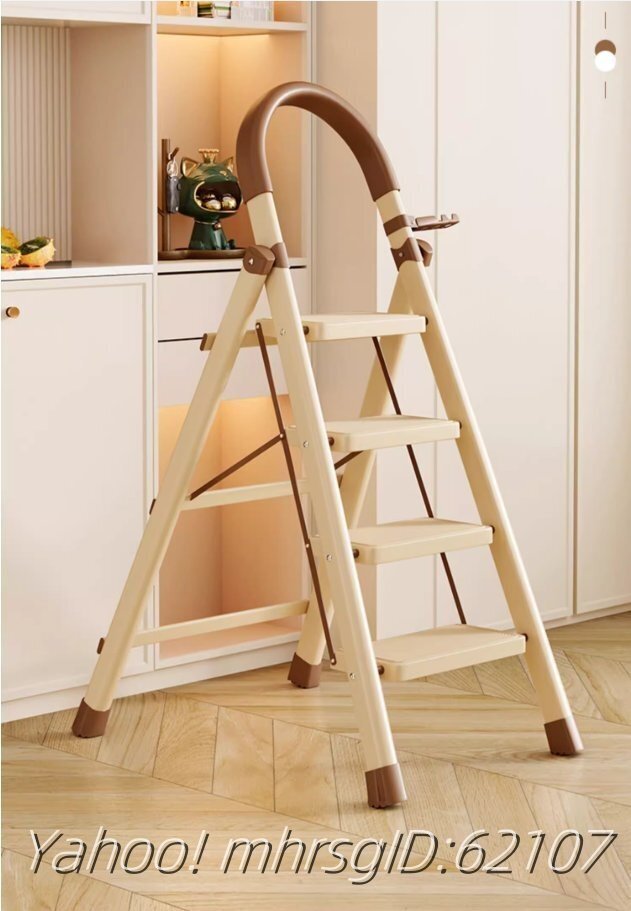 - 家用の折りたたみはしご、加厚クリーム色、 multifunctional 人字形はしご、4段はしご、携帯可能、滑り止め、高い場所に登るための階段
