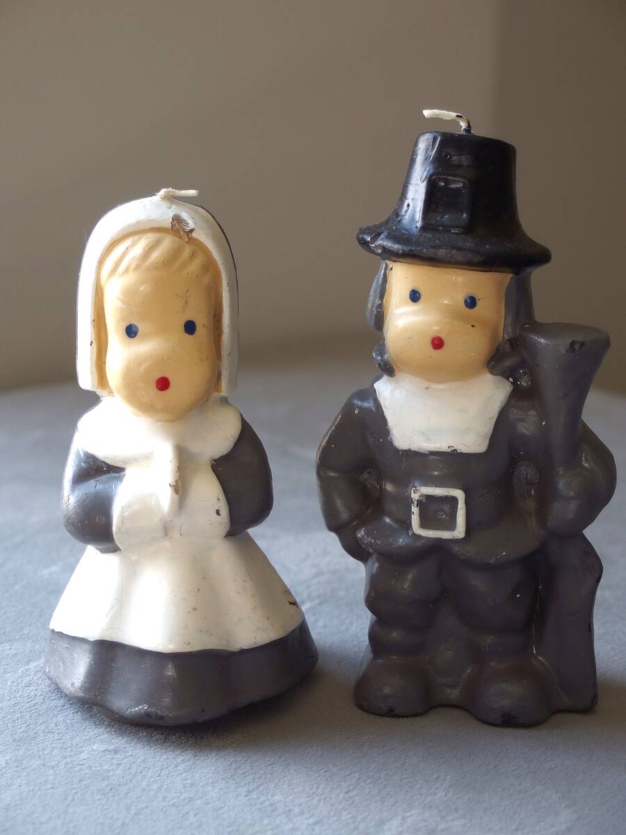 - 激レア!アメリカ 1950,60年代製 ヴィンテージ キャンドル2本 サンクスギビング/感謝祭 (GURLEY PILGRIM BOY AND GIRL/巡礼者男性と女性)