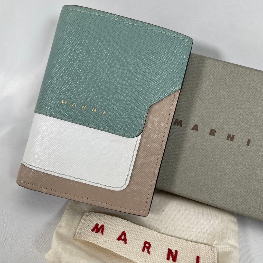 - 未使用に近い MARNI マルニ 二つ折り財布 バイフォールド コンパクトウォレット 箱付 レザー 本革 マルチカラー